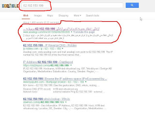در تصویر زیرین اخطار آزادگی در رابطه با آی پی جدید است و اگر به تصویر توجه فرمایید این پیام اخطار در راستای جستجوی آی پی اصلی وبسایت آزادگی در گوگل ظاهر شده است: